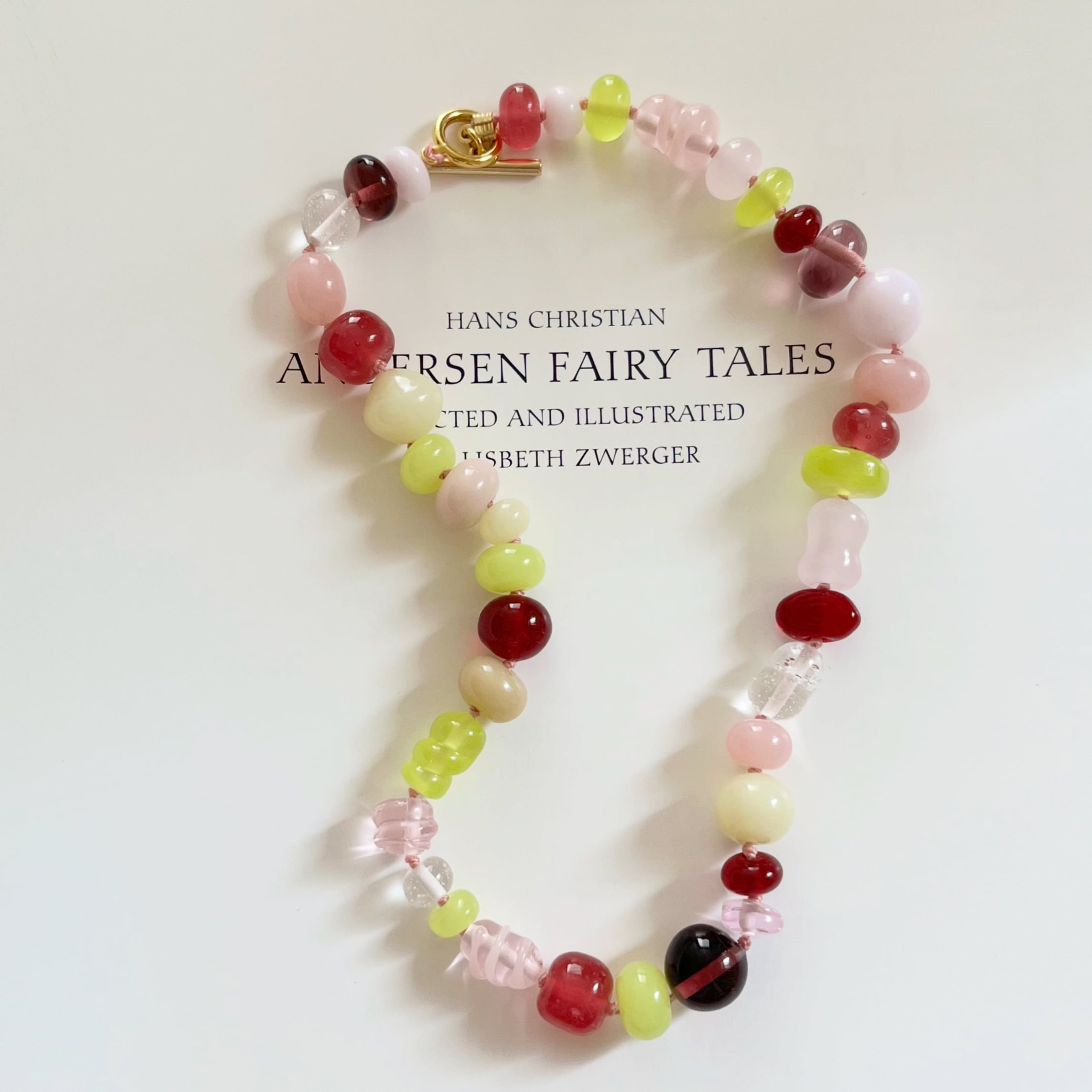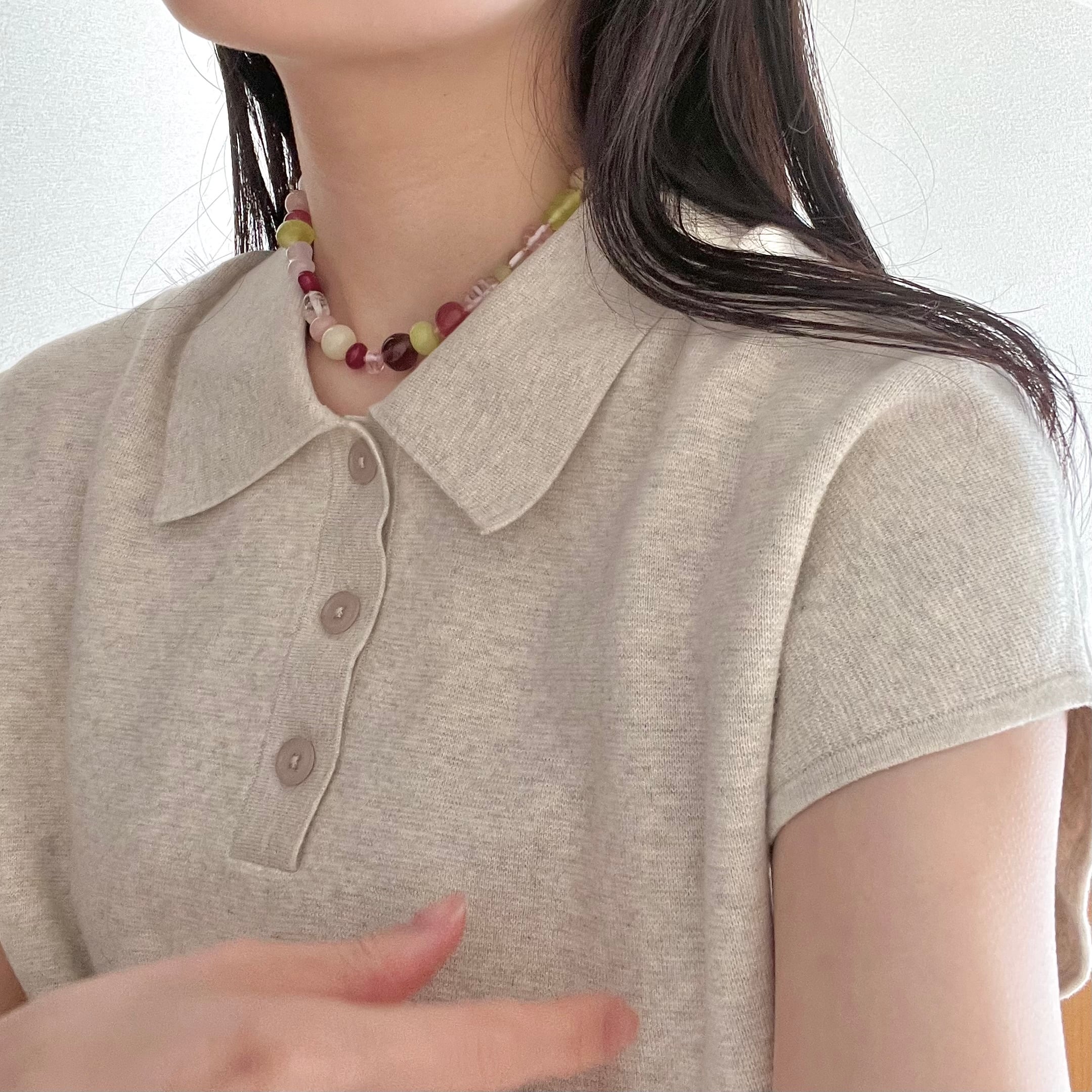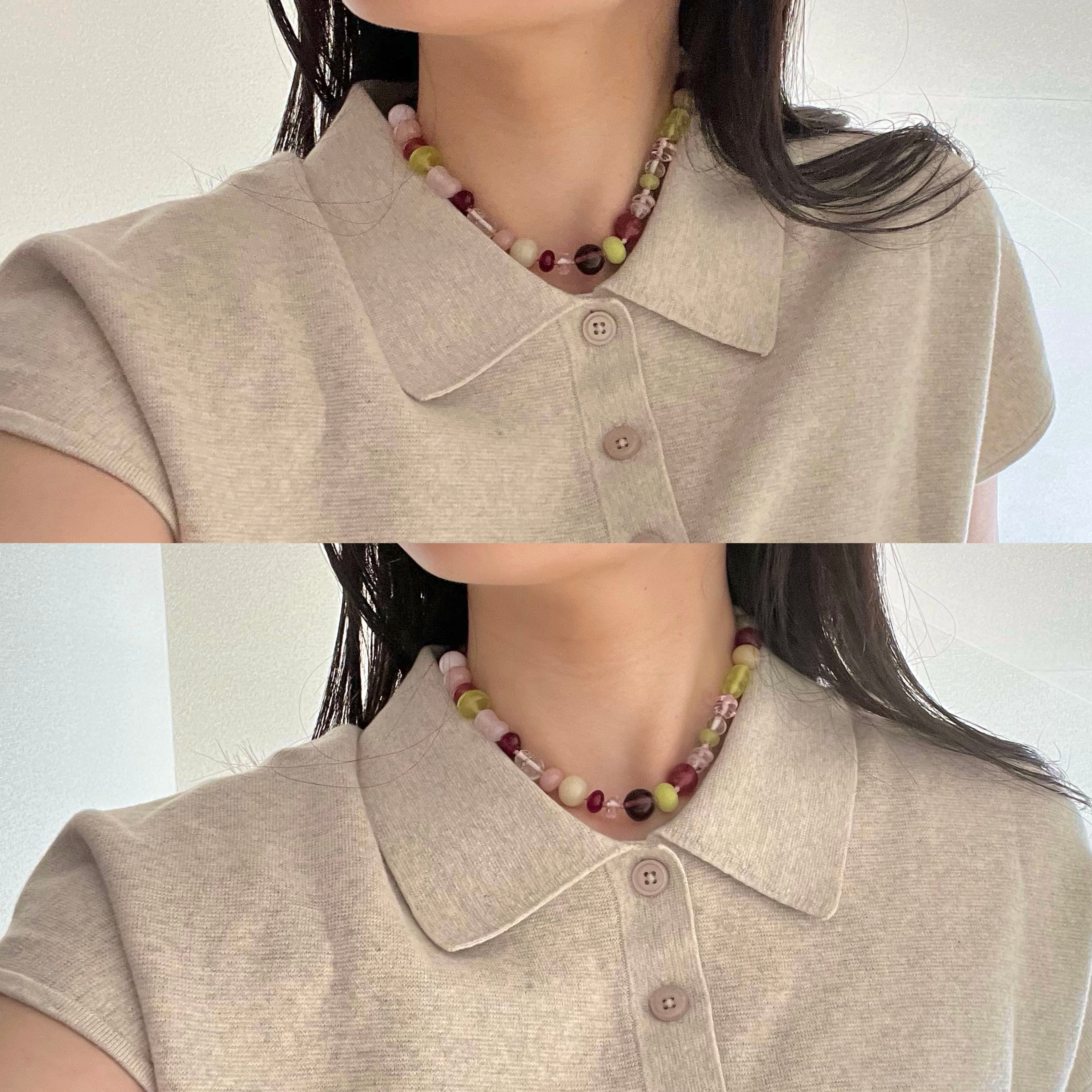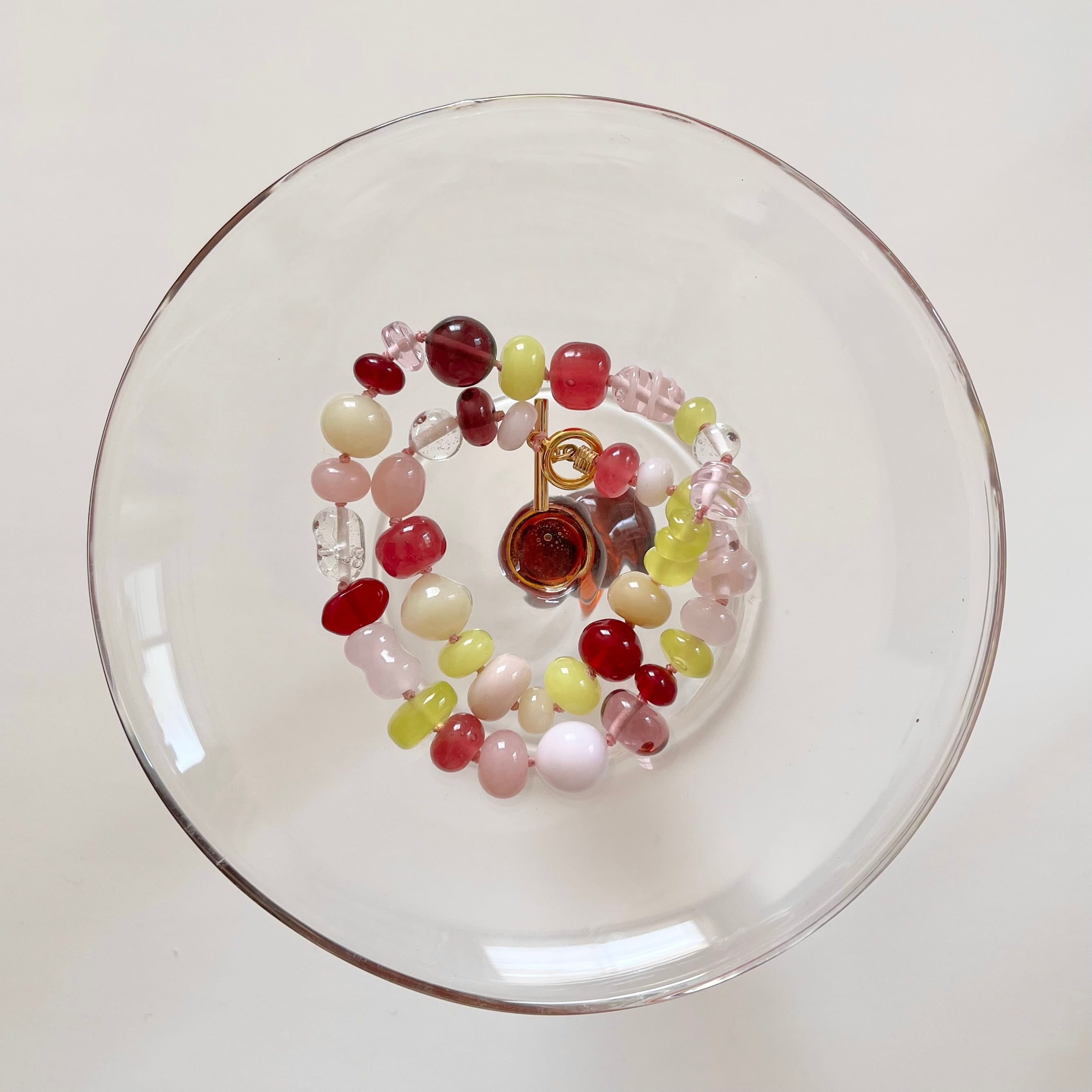 花びらがふわりと舞う瞬間を、そのまま閉じ込めたようなガラスビーズネックレス。